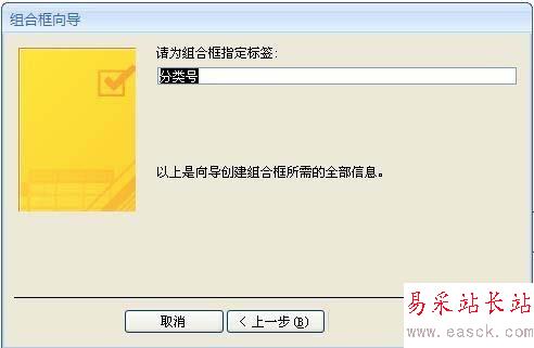 6、連續(xù)單擊3次“下一步”按鈕,打開(kāi)組合框向?qū)瓿山缑?,保持系統(tǒng)默認(rèn),單擊“完成”按鈕,完成對(duì)組合框的設(shè)置。