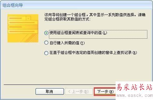 3、系統(tǒng)自動(dòng)彈出組合框向?qū)?,保持系統(tǒng)默認(rèn)設(shè)置,單擊“下一步”按鈕。
