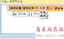 6、鼠標單擊排序右側的“更多”選項,可以查看匯總、頁眉頁腳等更多的選項。