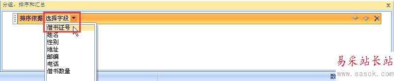 4、在打開的排序依據窗格中,單擊“選擇字段”右側的三角按鈕,在彈出的列表中選擇要排序的字段。