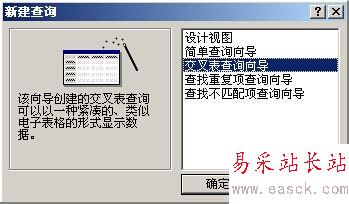 四、建立交叉表查詢除了用上述的設計視圖創(chuàng)建,但也可以用向?qū)Ш蛃ql語句實現(xiàn)。