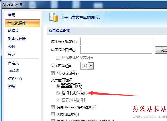 以上就是Access數(shù)據(jù)庫文檔窗口設置為選項卡式文檔的教程,希望大家喜歡,請繼續(xù)關注錯新站長站。