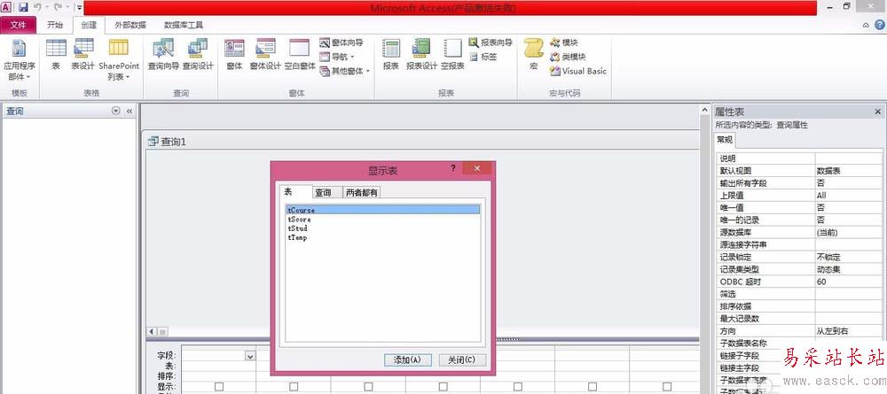 3、在【顯示表】對話框中添加“tStud”表,關閉對話框。