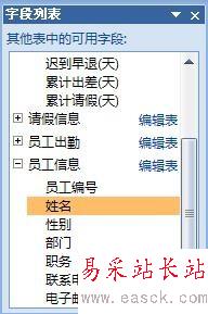 2、打開“字段列表”窗格,展開提供數據的表,雙擊要導入的字段。