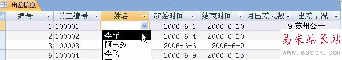7、添加后的字段自動引用了源字段中的記錄,用戶可從相應的下拉列表中選擇需,要的記錄(不能手動輸入記錄)。也就是說,這兩個表通過添加的字段自動建立了關系。