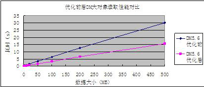 圖4 優(yōu)化前后的DM5.6大對象讀取速度對比