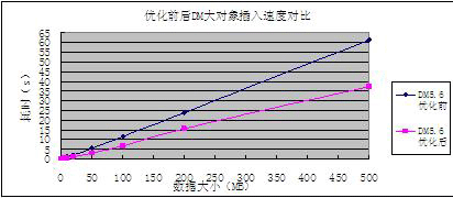 圖3 優(yōu)化前后的DM5.6大對象插入速度對比