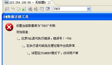 重新啟動(dòng)223.254.100.59上的達(dá)夢(mèng)服務(wù)器,它將轉(zhuǎn)換為備機(jī)模式,但是不能直接訪(fǎng)問(wèn)備機(jī)的test庫(kù):