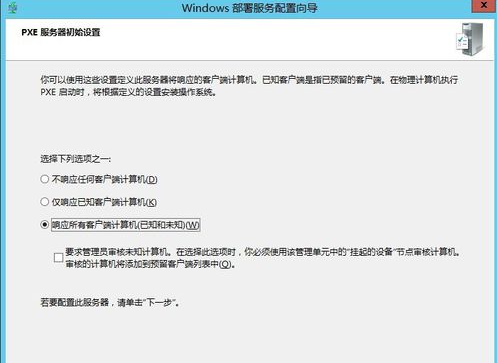 1. 選擇【獨立服務】以及【響應所有客戶端計算機】完成Windows部署服務的配置。