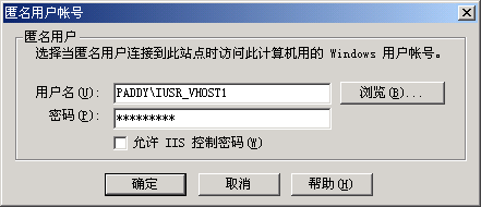 彈出了“匿名用戶帳號”,默認的就是“IUSR_機器名”,點“瀏覽”: