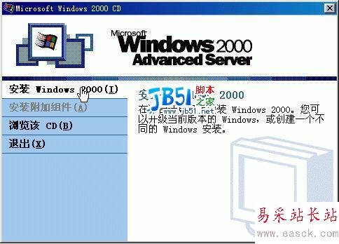 1、在windows 98 系統中,插入win2000光盤,由于光盤是自動運行的,所以會彈出如下圖所示的對話框: