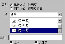 第八步雙擊第六步中的第一個導航圖標出現右圖,選擇跳轉方式,選中第一頁其他默認,然后確定,并把導航圖標的名稱改為第一頁。重復第七步分別余下的導航圖標進行設置。