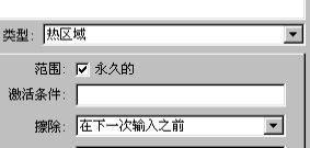 并對“按鈕”、“擦除按鈕”熱區屬性的范圍設置為“永久”,熱區域設置為“當指針在區域內”