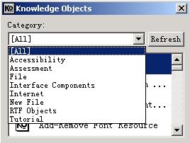 這類知識(shí)對(duì)象提供了常用的文件相關(guān)的ko,包括有系統(tǒng)字體增刪、文件拷貝、光驅(qū)盤符查找、authorware文件跳轉(zhuǎn)、ini文件的存取以及文件屬性的設(shè)置等共7個(gè)知識(shí)對(duì)象,方便了設(shè)計(jì)用戶對(duì)文件相關(guān)的控制設(shè)計(jì)工作。