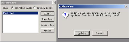 前面我們提過庫與程序之間的這種特殊的鏈接保持關(guān)系同樣體現(xiàn)在對(duì)設(shè)計(jì)圖標(biāo)的屬性修改上,也就是說建立"調(diào)用"鏈接關(guān)系后,修改庫文件里設(shè)計(jì)圖標(biāo)的屬性,其實(shí)并不影響先前程序流程線上任何已經(jīng)與該設(shè)計(jì)圖標(biāo)建立鏈接關(guān)系的設(shè)計(jì)圖標(biāo)的屬性,但是我們可以人為地進(jìn)行選擇性的更新,執(zhí)行菜單【xtras】/【library links...】可以選擇存在鏈接關(guān)系的程序流程線上的設(shè)計(jì)圖標(biāo),使其更新保持為和最新版本的庫文件有一致的設(shè)計(jì)圖標(biāo)屬性,如圖2所示。