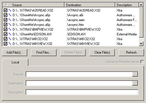 “files”文件選項(xiàng)卡如圖5所示。在文件列表框中列出了該程序打包的所有相關(guān)文件,例如相關(guān)的驅(qū)動(dòng)文件(*.x32、*.xmo等)、外部媒體文件(*.avi、*.wav等)、擴(kuò)展函數(shù)庫(kù)(*.u32、*.dll等)等,當(dāng)然也包括即將發(fā)布輸出的相關(guān)打包文件,例如*.exe、*.a6r、*.aam、*.htm等文件,根據(jù)發(fā)布形式的不同而異。