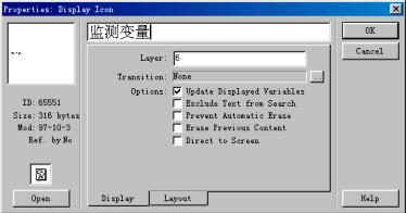 (5) 為了使該變量的顯示內(nèi)容一直顯現(xiàn)在展示窗口中,我們在該對話框中的【layer】正文輸入框中輸入在該應(yīng)用程序中最高級別的層級。我們輸入層級6。則在程序的運行過程中,該變量的變化的值會一直顯示在展示窗口中,除非用【擦除】設(shè)計按鈕來擦除。