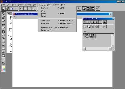 (4) 當authorware遇到【停止】旗幟停止執(zhí)行程序后,讀者可以回到流程線上進一步編輯流程線上的設(shè)計按鈕,也可以在展示窗口中編輯窗口中的顯示對象。在這兩種情況下,讀者都可以在編輯完成后,使用【control】菜單的【play】命令從程序停止處繼續(xù)執(zhí)行應(yīng)用程序。