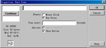 首先選擇【control】菜單的【pause】命令,然后雙擊【等待】設(shè)計按鈕,彈出圖8-5所示的【等待】設(shè)計按鈕屬性對話框。在該對話框中設(shè)置【等待】設(shè)計按鈕的相關(guān)屬性,然后單擊【ok】關(guān)閉該對話框。