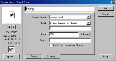 圖10-44【聲音】設計按鈕的【timing】對話框