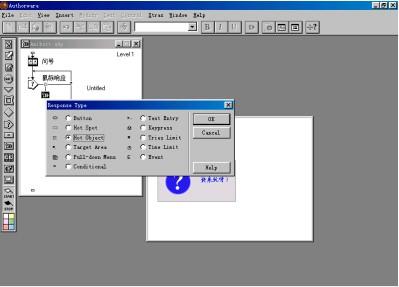 (1) 拖曳一個【映射】設計按鈕到圖10-35所示的位置,來設置【交互作用】分支結構的第三條分支。authorware自動將該分支結構的響應類型設置為熱對象響應。
