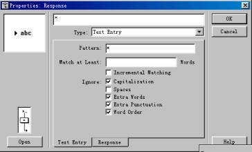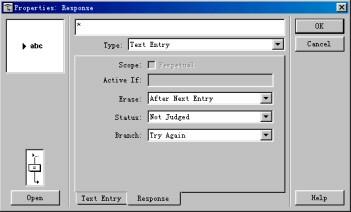 步驟11 拖曳一個【運算】設計按鈕到圖12-6所示的位置,在響應類型對話框中選擇響應類型為【text entry】正文輸入響應。單擊【ok】命令按鈕,結束響應類型設置。