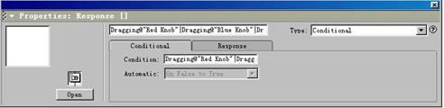 這表示只要3個滑塊中的任何一個產生了移動,使條件狀態為“真”,便可進入該分支。也就是說,當用戶拖動滑塊改變了其位置,便立即產生條件交互響應進入本分支填充矩形。