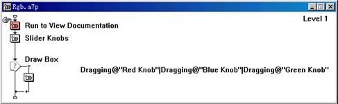 【run to view documentation】群組圖標中有一個【make the knobs movable】運算圖標,利用代碼movable @"red knob":=true設置了3個滑塊的可移動性。