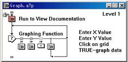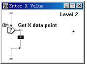 程序設計了一個【click on grid】的熱區交互響應分支,熱區區域就是網格背景區域。當用戶用鼠標在網格區域內單擊時,其下的運算圖標執行datapointx:=clickx,datapointy:=clicky從而將鼠標單擊處的坐標值存入折點變量datapointx和datapointy。