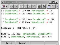 也就是說,用戶輸入的x坐標數值必須加上10才形成畫線時的折點x坐標,而用戶輸入的y坐標數值與218的差值才形成畫線時的折點y坐標。因此:
