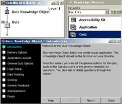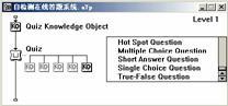 authorware 5.0開始引進的知識對象ko(knowledge object)可以說是一個類似編程平臺的集成化開發(fā)設(shè)計對象,只要簡單地按步驟填入?yún)?shù),就可快速完成復(fù)雜的功能,極大地方便開發(fā)設(shè)計工作。quiz知識對象就是authorware 7.0自帶的一個能夠幫助您快速完成練習(xí)題檢測系統(tǒng)設(shè)計的知識對象,下面我們就用它來制作一個簡單的自檢測在線答題系統(tǒng)。