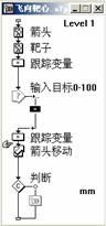 為了說明如何使用跟蹤窗口在authorware的應用程序運行時跟蹤變量的值,我們仍以實例“飛向靶心”中的程序為原型來說明該問題。