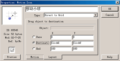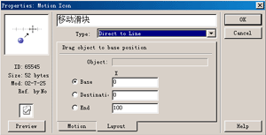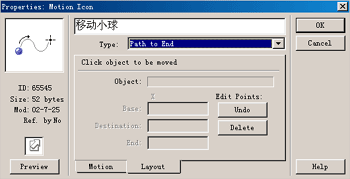 利用動畫圖標,可以移動顯示圖標、數(shù)字電影圖標以及交互圖標中的對象,使其從屏幕的一個地方運動到另一個地方。通過對運動屬性的設(shè)置,可以控制物體運動的軌跡、速度以及運動起止點的位置。
