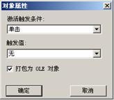 l “激活觸發條件”選項:設定交互屬性,從而決定是單擊或雙擊ole對象響應。