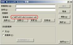6)在圖4-18中我們還可以為數據源選擇指定的數據庫文件,單擊【選擇】按鈕,將會彈出對話框,在這里我們選擇“e:/aw7/u32/odbc/ student.mdb”作為源數據庫,然后單擊【確定】按鈕。