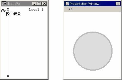 向【設計】窗口中的流程線上拖放一個顯示設計圖標,將其命名為“表盤”,如圖3-54所示,然后在“表盤”設計圖標中繪制一個圓形對象。在本例中,這個圓形對象將作為表盤使用。