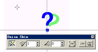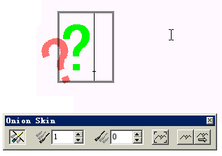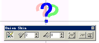 10 、 將 onion skin 選項板上的 preceding cast member 設置成 2 ,你就會看到一個更淺的紅色問號,如圖 8 所示。