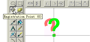 9 、 同樣的,新建一個位圖造型成員,再畫一個藍色的問號,并設置好注冊點,做好后你會看到如圖 7 所示。也許你會問,紅色的問號為什么不見了?下面我們就把它弄出來!
