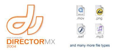 director 支持廣泛的媒體類型,包括多種圖形格式以及 quicktime 、 avi 、 mp3 、 wav 、 aiff 、高級圖像合成、動畫、同步和聲音播放效果等 40 多種媒體類型。