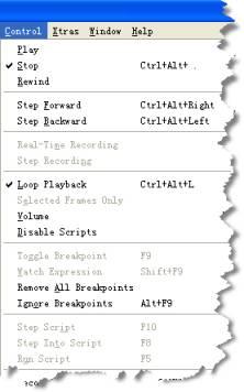 使用快捷鍵無疑將會大大提高開發效率,熟練的使用快捷鍵,給人的感覺是非常大蝦。那么,怎樣才能得到快捷鍵呢?在 director 的操作環境中就提供了相關的信息,打開某個菜單,快捷鍵通常都列在命令的后面。如圖 2-12