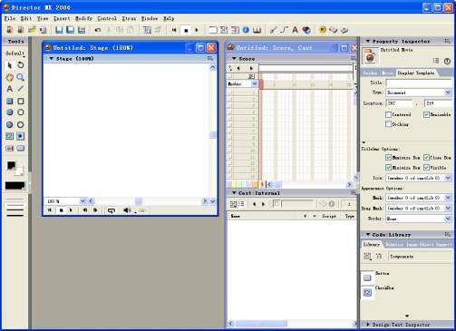 director 將每一個工程都形象地稱為電影( movie ),組成電影的元素成為演員( cast ),電影情節發生的地方稱為舞臺( stage ),控制情節的窗口叫做劇本( score )。