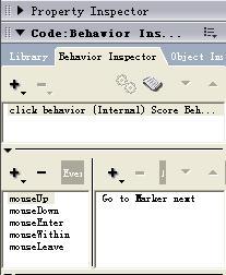 l behavior inspector (行為檢視器)允許你快速的為舞臺中的對象添加腳本實現互動功能。如圖 2-17 所示的圖中,顯示了創建和定制腳本的工具,我們將在后面涉及具體細節。