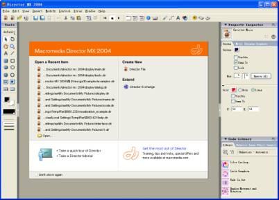 按“開始”按鈕,再選擇“所有程序” -> “ macromedia ” -> “ macromedia director mx 2004 ”,桌面上馬上顯示如圖 2-29 所示的歡迎畫面。
