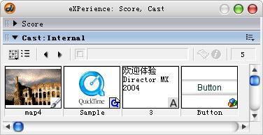 演員窗口是電影中所使用到的所有演員存儲的倉庫,窗口中的每一個對象都可以稱為“演員”( cast member )。演員可以包括圖片、聲音、文字、調(diào)色板、視頻文件、腳本等等。盡管在 director 中我們也可以創(chuàng)建圖像演員,但是大多數(shù)用戶都是在一些外部程序中創(chuàng)建演員,然后再導(dǎo)入到 director 中,本章我們就是來完成這項(xiàng)工作。