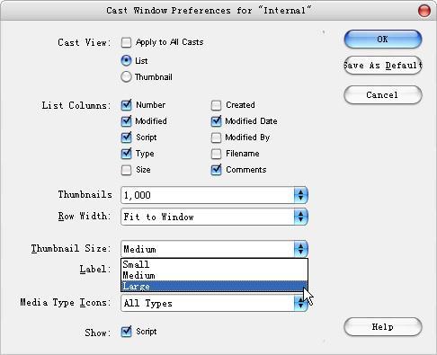 thumbnails size 用來(lái)設(shè)置演員窗口中縮略圖的大小。