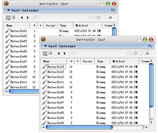 1 在演員窗口中,單擊某個(gè)列的字段名,則按該列進(jìn)行排序。如單擊“ # ”字段名,則根據(jù)演員在演員窗口中的序號(hào)進(jìn)行排序。