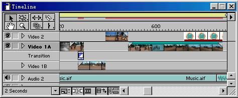 在premiere 6.0眾多的窗口當中,居核心地位的是時間軸(timeline),在時間軸中,可以把視頻片斷、靜止圖像、聲音等組合起來,并能創作各種特技效果。如圖6所示。