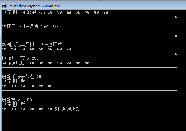 Console.WriteLine("刪除單孩子節點 90, /n中序遍歷后:");