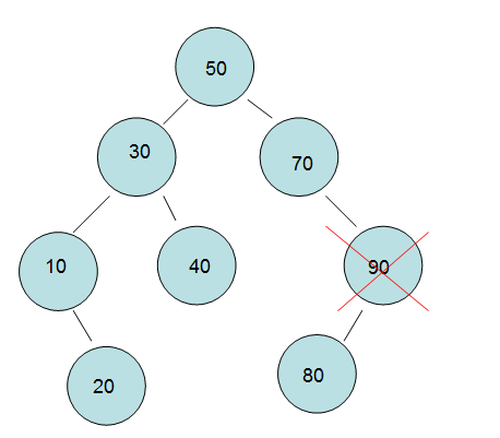 《2》刪除”單孩子節點90“,這個情況相比第一種要麻煩一點點,需要把他的孩子頂上去。