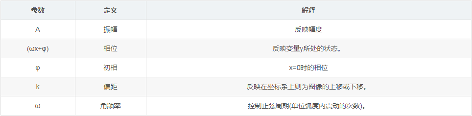 DFT用于將信號從時域變換為頻域,而且時域與頻域都是離散的,可以確認出一個信號是由哪些正弦波疊加而成,而這些結果者反應為正弦波的振幅和相位等信息。而至于時域與頻域,前者表示的是信號隨時間動態變化的關系,在這種分析方式下,往往會隨著時間的不同信號呈現不同的狀態變化。而頻域可以理解為正弦波的振幅,從傅立葉的論斷中我們了解到,任何周期函數,都可能是由不同振幅和不同相位與角頻率的正弦波的疊加,頻域分析的一個主要結果是頻譜,常見的頻譜有兩種:振幅相關的頻譜與相位相關的頻譜。比如正弦曲線可表示為y=Asin(ωx+φ)+k,具體的實際意義如下所示: